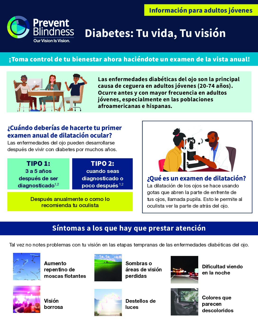 Las hojas informativas de Prevent Blindness están completamente protegidas por las leyes de derechos de autor de EE. UU. No se pueden editar de ninguna manera sin el consentimiento previo por escrito de la oficina nacional.